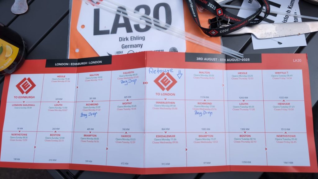 So gesehen war es meine 4. Fahrt mit 1000 Kilometer in diesem Jahr. Pannen – und unfallfrei, ohne Sturz oder gesundheitliche Probleme und Nachwirkungen. Über die Kompensation der fehlenden Homologation wolle ich mir später in Ruhe und mit etwas Abstand die nötigen Gedanken machen. Erstmal überwog die Freude über den glücklichen Ausgang dieser Tour. Ein Brevet ist und bleibt ein Brevet, und es ist immer anders. England hat mir gefallen, auch wenn ich nicht alles gesehen habe und es keinen schottischer Wiskey gab. LEL 2029? Mal sehen.